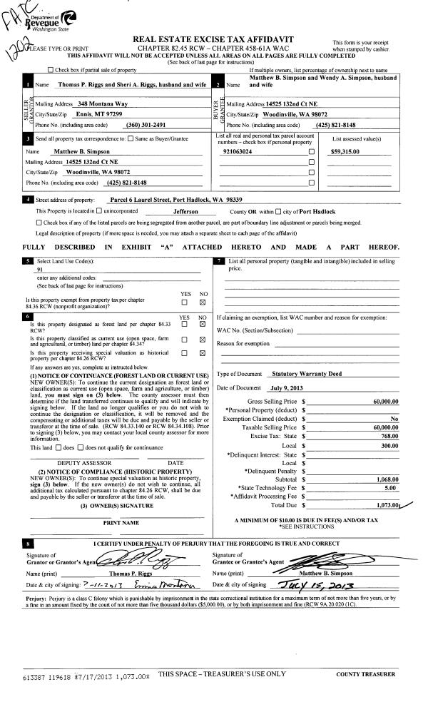 | 1 | 09/15/2014 | SWD | Statutory Warranty Deed | RUSSELL E WHITE | KENNETH I & CYNTHIA E STAGG | | | $318,000.00 | 121951 | |
