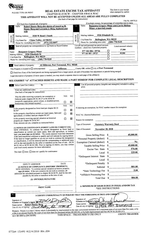 | Mailing Address: | JANE A LANDSTRA 350 UMATILLA AVE PORT TOWNSEND, WA 98368-5038 | % Ownership: | 100.0000000000% |