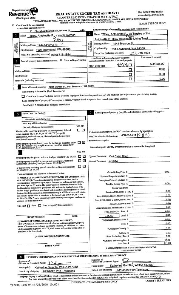 | Mailing Address: | THADEA I OTTO 40 MUNCIE AVE QUILCENE, WA 98376-9636 | % Ownership: | 100.0000000000% |