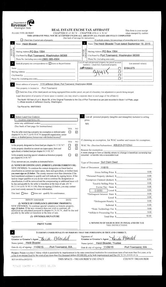 | Mailing Address: | PO BOX 1220 PORT TOWNSEND, WA 98368-0920 | % Ownership: | 100.0000000000% |