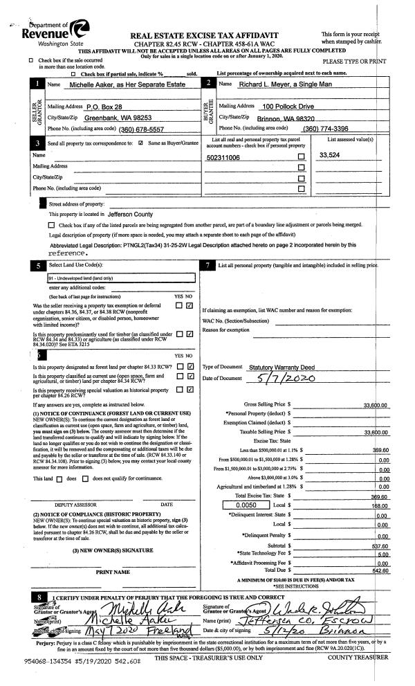 | 2 | 04/27/2020 | PRD | Personal Representatives Deed | DORIS L BOGACHUS | HOOD CANAL SALMON ENHANCEMENT GROUP | | | $115,000.00 | 135527 | |