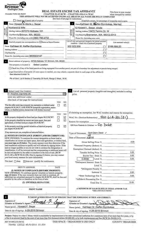 | 2 | 02/05/2007 | QCD | Quit Claim Deed | PETERS, BOB & NORMA | PETERS LIVING TRUST | 0 | 0 | $0.00 | 108579 | 0 |