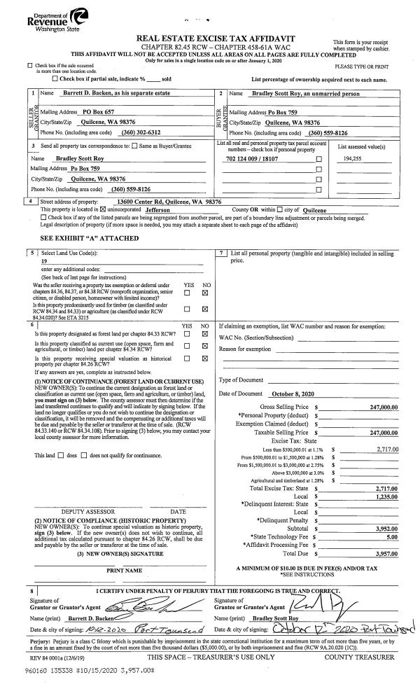 | Mailing Address: | 481 FARNSWORTH PL SEQUIM, WA 98382-8757 | % Ownership: | 100.0000000000% |