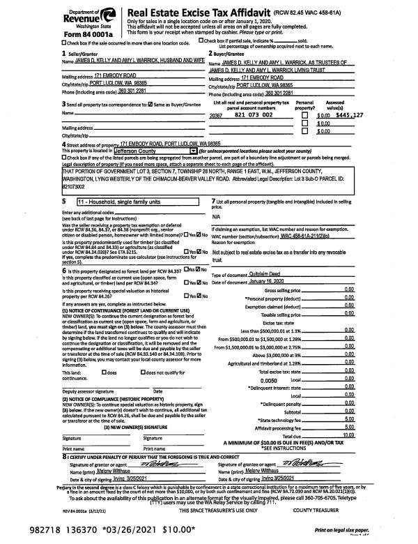 | Mailing Address: | MICHAEL L ALLEN 411 SUNSHINE DR SEQUIM, WA 98382 | % Ownership: | 100.0000000000% |