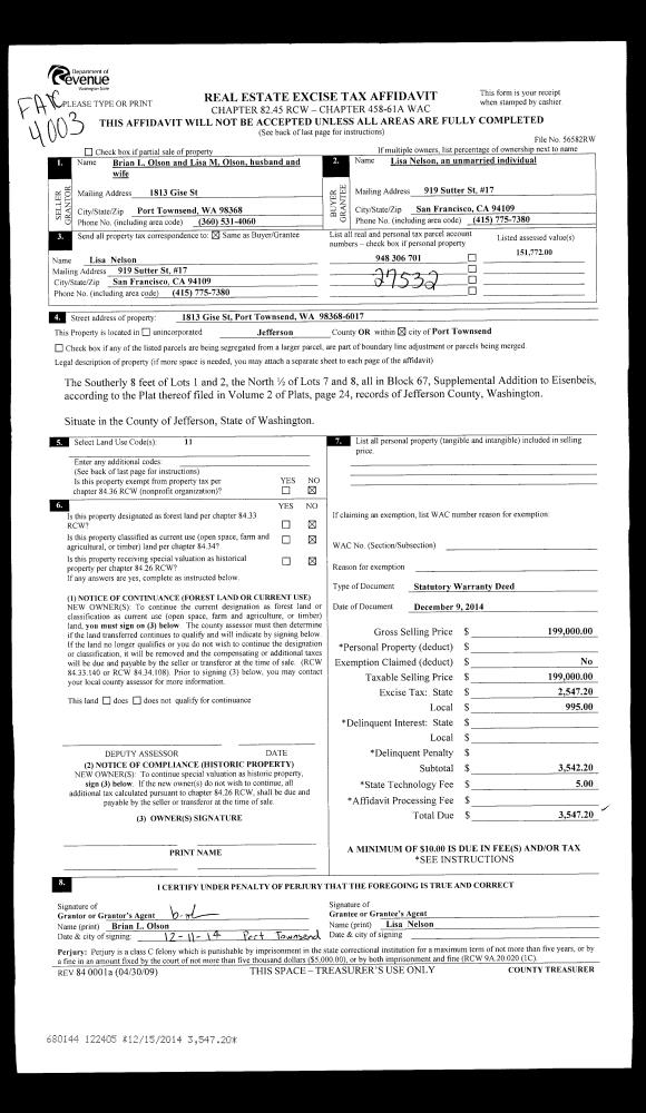 | 2 | 09/17/2015 | SWD | Statutory Warranty Deed | PATRICK N WHELAN | SHARON L & NORTON D COURON | | | $490,000.00 | 124005 | |