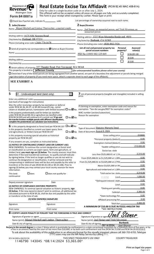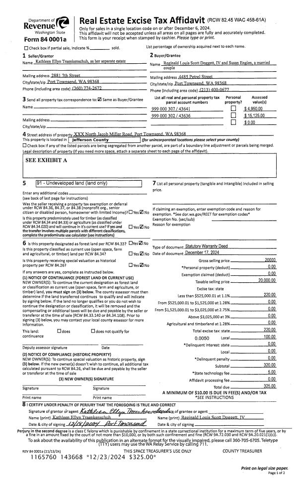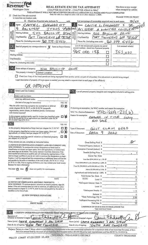 | Mailing Address: | 4534 LOPEZ AVE PORT TOWNSEND, WA 98368-2728 | % Ownership: | 100.0000000000% |