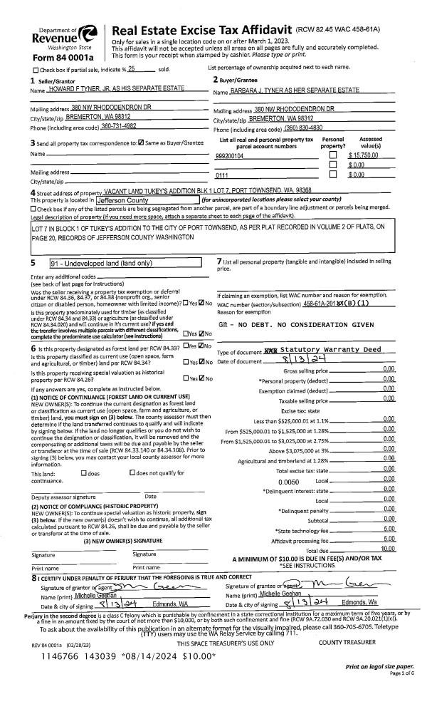 | Mailing Address: | 4486 LOPEZ AVE PORT TOWNSEND, WA 98368-2712 | % Ownership: | 100.0000000000% |