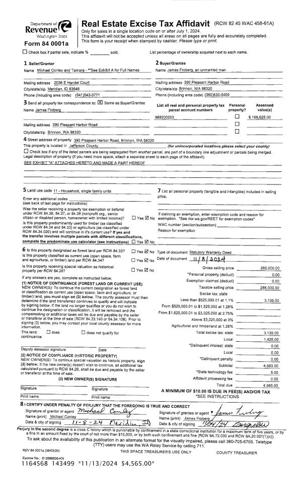| Mailing Address: | JASON GUNBY 4404 LOPEZ AVE PORT TOWNSEND, WA 98368-2712 | % Ownership: | 100.0000000000% |
