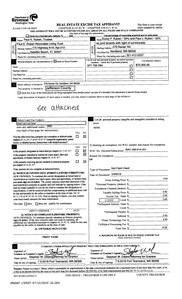 | Mailing Address: | 1453 LOPEZ AVE PORT TOWNSEND, WA 98368-2702 | % Ownership: | 100.0000000000% |