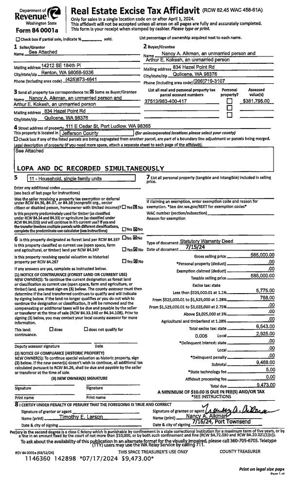 | Mailing Address: | DEBORAH K HAMMOND 4423 LOPEZ AVE PORT TOWNSEND, WA 98368-2711 | % Ownership: | 100.0000000000% |
