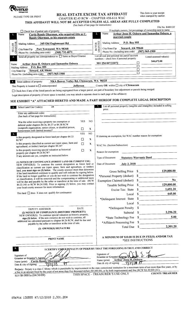 | Mailing Address: | 4495 LOPEZ AVE PORT TOWNSEND, WA 98368-2711 | % Ownership: | 100.0000000000% |