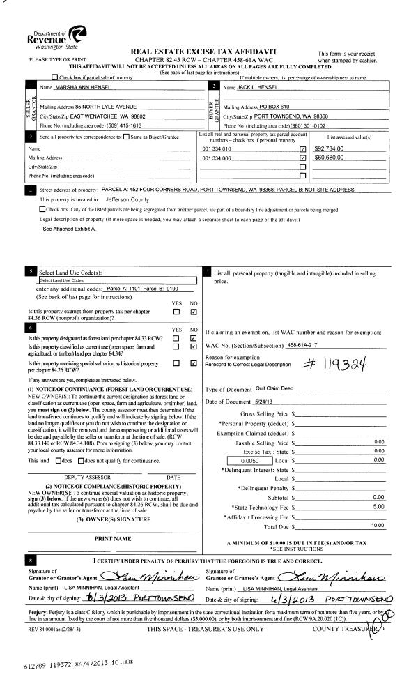 | Mailing Address: | 4890 S DISCOVERY RD PORT TOWNSEND, WA 98368-9022 | % Ownership: | 100.0000000000% |