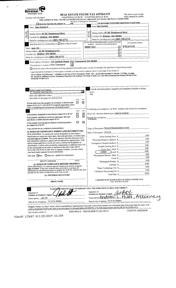 | Mailing Address: | KAREN F BROCKWAY 684 SEAL ROCK RD BRINNON, WA 98320 | % Ownership: | 100.0000000000% |