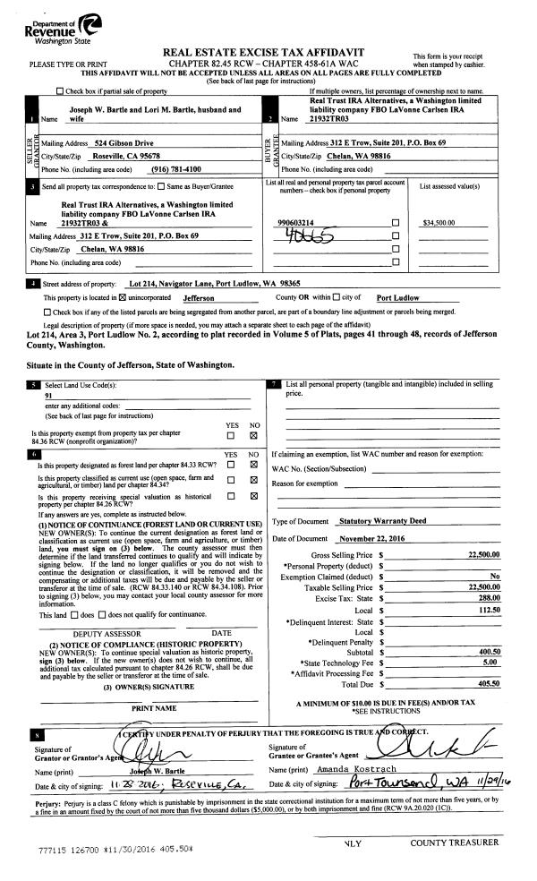 | 1 | 09/14/2017 | SWD | Statutory Warranty Deed | JOHN P WEIBEL | DOUGLAS & CYNTHIA HENDERSON | | | $235,000.00 | 128571 | |