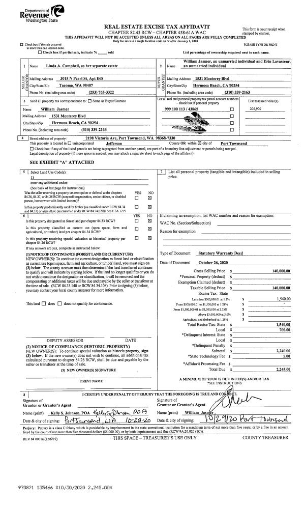 | 2 | 02/22/2021 | SWD | Statutory Warranty Deed | AN DANG TU | TREVOR & TERESA COALMAN | | | $60,000.00 | 136163 | |