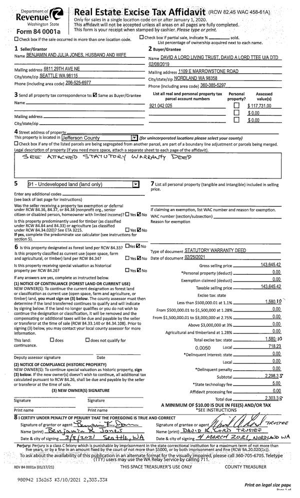 | Mailing Address: | JEREMIAH J WREN 220 SEAMOUNT DR BRINNON, WA 98320-9672 | % Ownership: | 100.0000000000% |