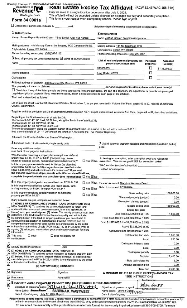 | 1 | 07/19/2024 | QCD | Quit Claim Deed | SARAH E SHAFFER | SARAH E & ROBBY SHAFFER | | | | 143113 | |