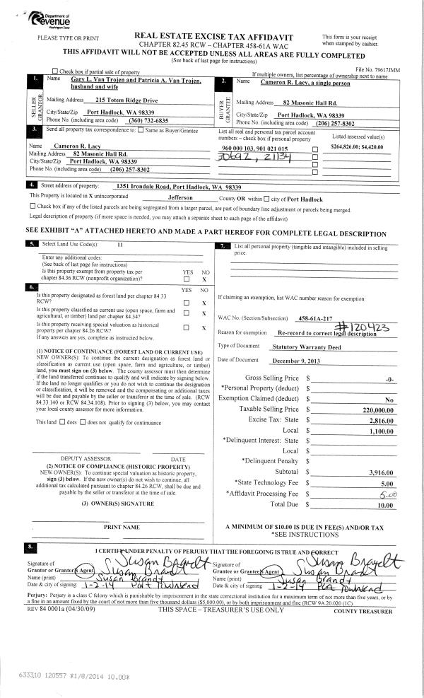 | 3 | 02/24/2015 | SWD | Statutory Warranty Deed | MARY V CARDWELL TRUSTE | TIMOTHY DANE HALEY | | | $155,000.00 | 122756 | |
