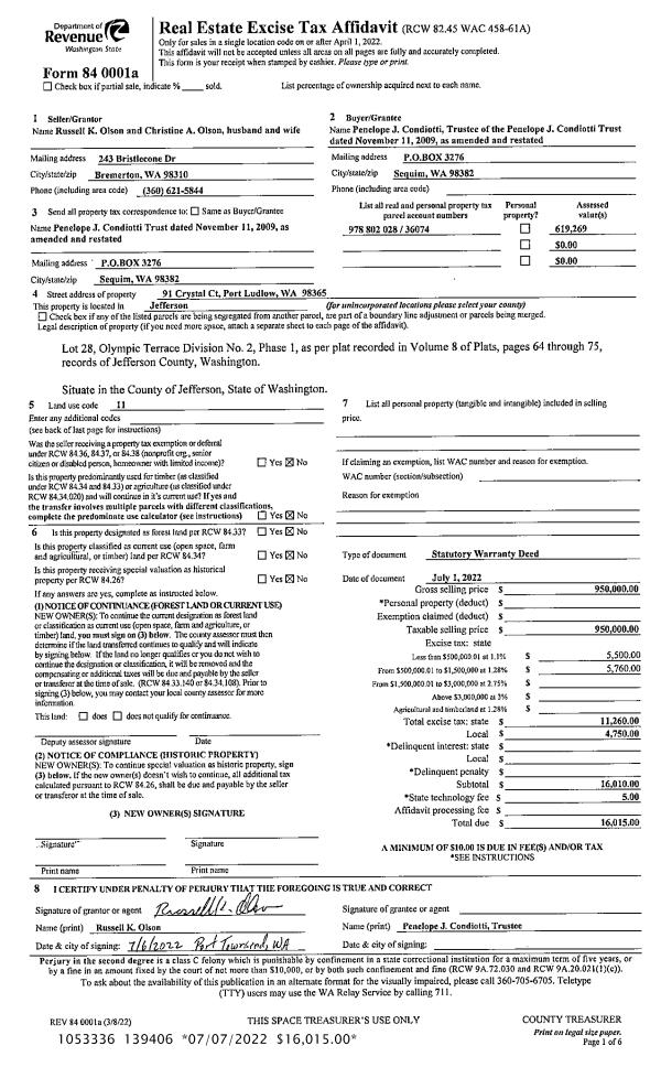| Mailing Address: | 260 CIRQUE DR BRINNON, WA 98320 | % Ownership: | 100.0000000000% |