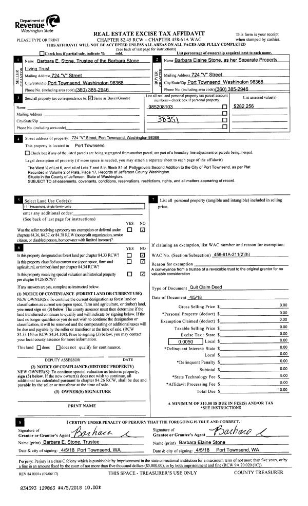 | 2 | 10/13/2017 | QCD | Quit Claim Deed | PEARL TERAS | PEARL G TERAS LIVING TRUST | | | | 129469 | |