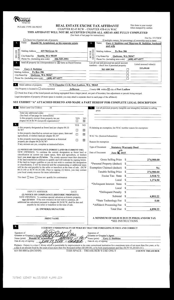 | 1 | 09/08/2021 | SWD | Statutory Warranty Deed | WILLIAM F WADLEIGH TRSTEE | STANLEY C & KATHRYN A CRAIG | | | $120,000.00 | 137665 | |