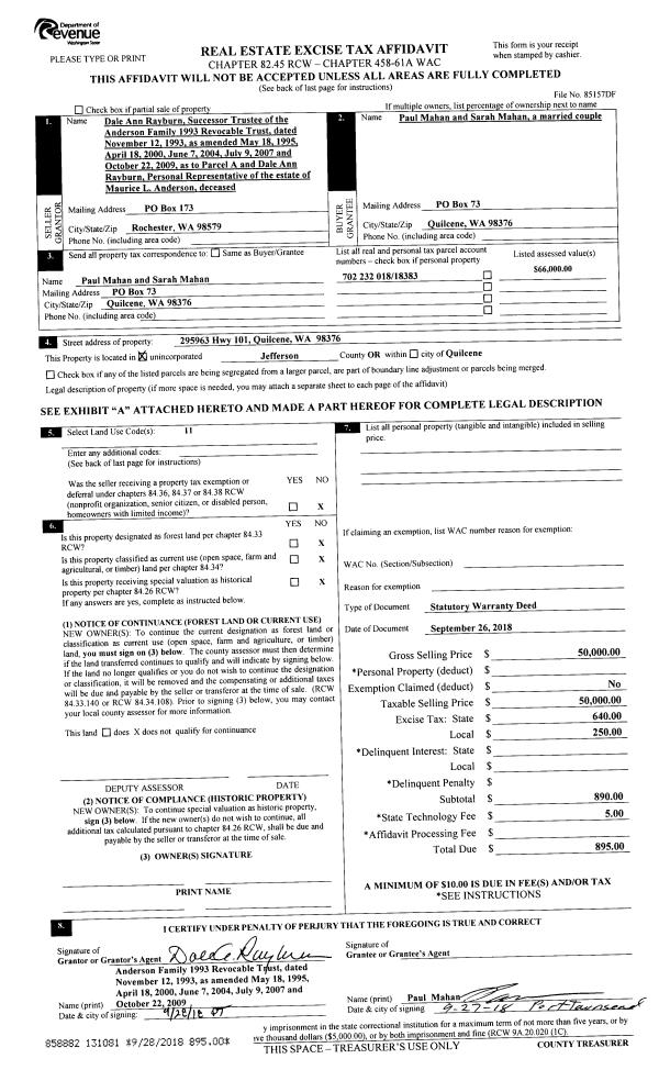 | Mailing Address: | MARIA J TIMMONS 1939 49TH ST PORT TOWNSEND, WA 98368-2013 | % Ownership: | 100.0000000000% |