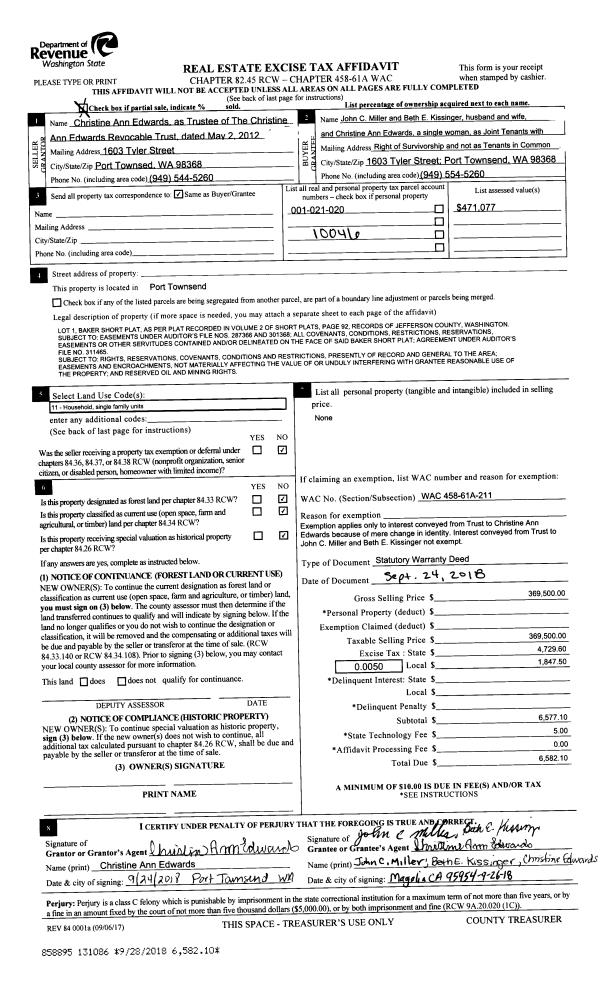 | Mailing Address: | 2599 SEAVIEW DR PORT TOWNSEND, WA 98368-1014 | % Ownership: | 100.0000000000% |