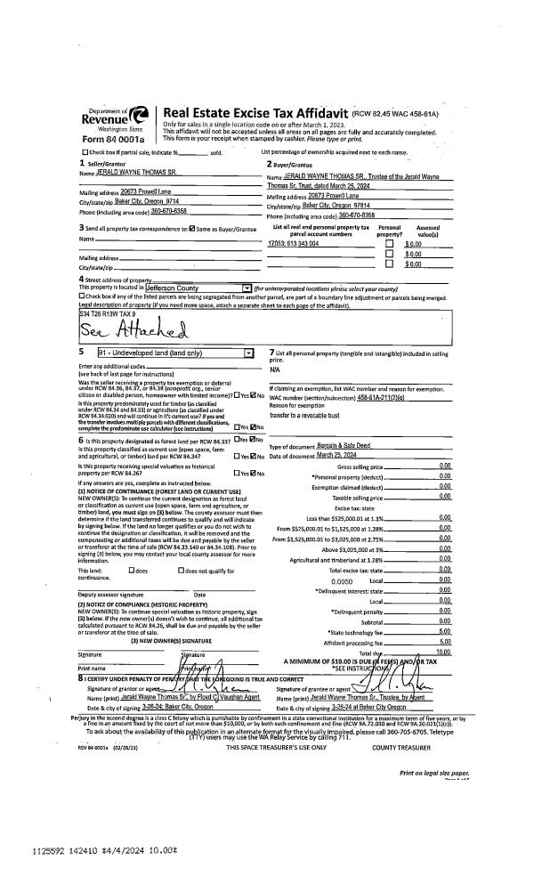 | Mailing Address: | BETSY STOWATER TRUSTEE 2364 SEAVIEW DR PORT TOWNSEND, WA 98368-1034 | % Ownership: | 100.0000000000% |