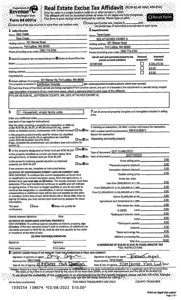 | 1 | 08/23/2022 | QCD | Quit Claim Deed | MICHAEL A NEAL | TONIA SIVA | | | | 139936 | |