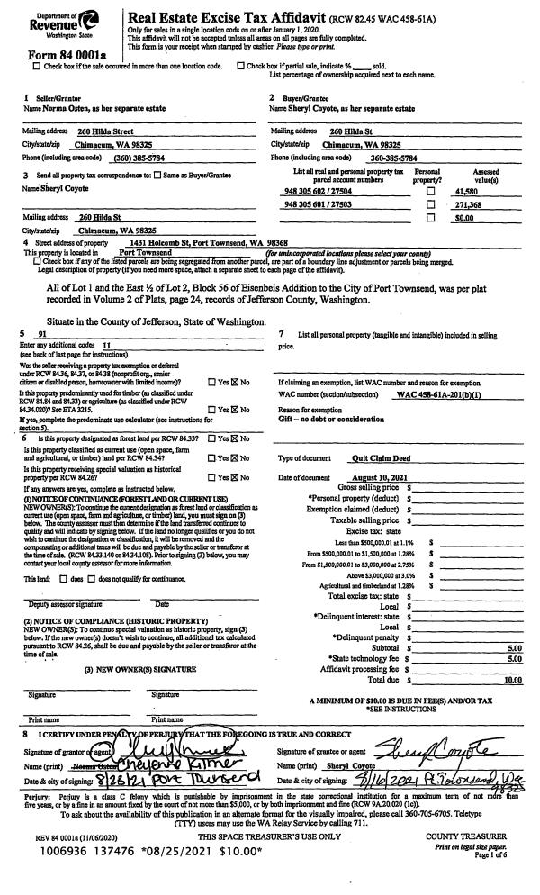 | 1 | 07/19/2001 | SWD | Statutory Warranty Deed | HALL, H MARTYN/JOYCE L | WOLF, CLANCY J/KATHLEEN L | 0 | 0 | $20,000.00 | 92752 | 0 |