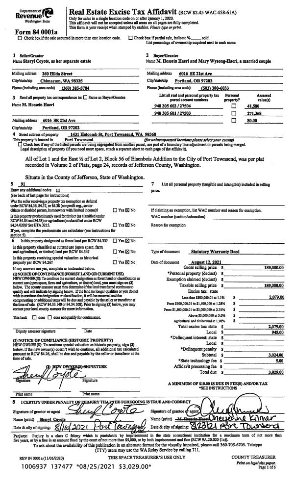 | Mailing Address: | 302 EDDY CT PORT TOWNSEND, WA 98368-5948 | % Ownership: | 100.0000000000% |