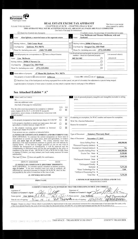 | 2 | 11/02/2016 | QCD | Quit Claim Deed | ENCLOSURES LLC WA | ANNE K ALFKE | | | | 126659 | |