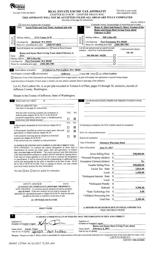 | Mailing Address: | 838 LINCOLN ST PORT TOWNSEND, WA 98368-5521 | % Ownership: | 100.0000000000% |