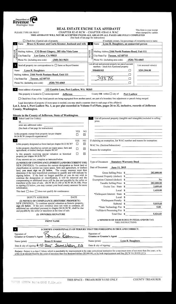 | Mailing Address: | 820 TAYLOR ST PORT TOWNSEND, WA 98368-5532 | % Ownership: | 100.0000000000% |