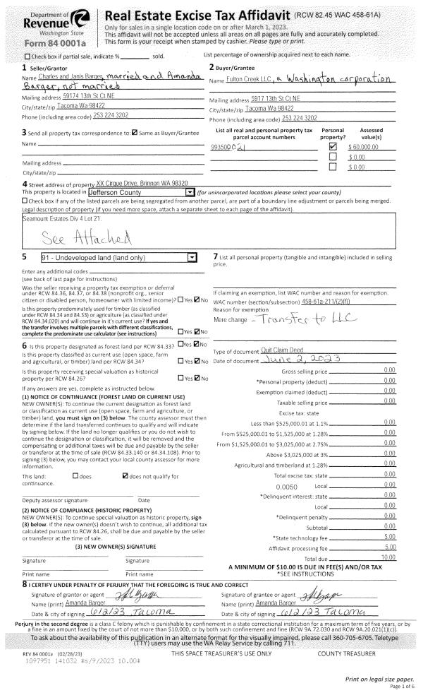 | Mailing Address: | 302 S 7TH AVE PORT HADLOCK, WA 98339-9675 | % Ownership: | 100.0000000000% |