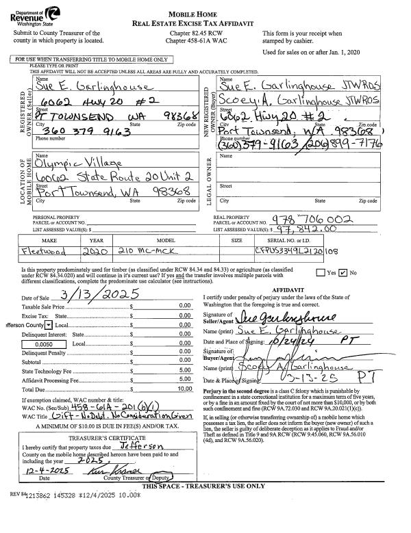 | Mailing Address: | 13810 63RD PL W EDMONDS, WA 98026-3239 | % Ownership: | 100.0000000000% |