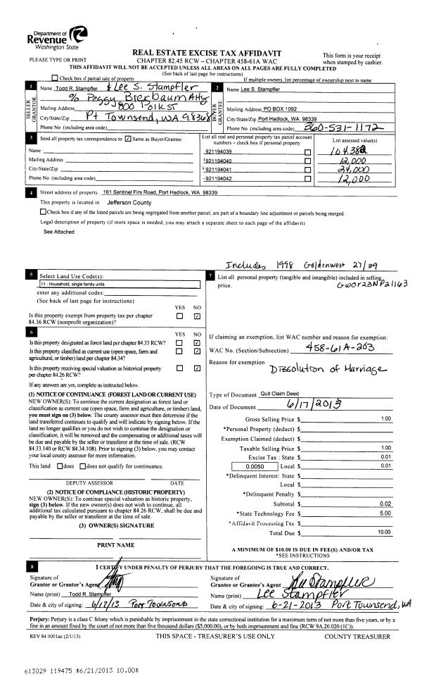 | Mailing Address: | 60 MARGARET ST PORT LUDLOW, WA 98365-2613 | % Ownership: | 100.0000000000% |
