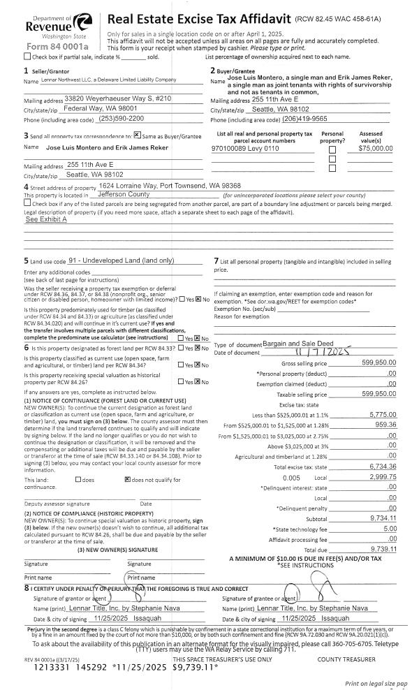 | Mailing Address: | ED HOON IL NOH TRUSTEE HELEN CHANG NOH TRUSTEE 150 MARGARET ST PORT LUDLOW, WA 98365 | % Ownership: | 100.0000000000% |