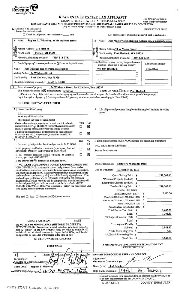 | Mailing Address: | 27084 OHIO AVE NE KINGSTON, WA 98346-8604 | % Ownership: | 100.0000000000% |
