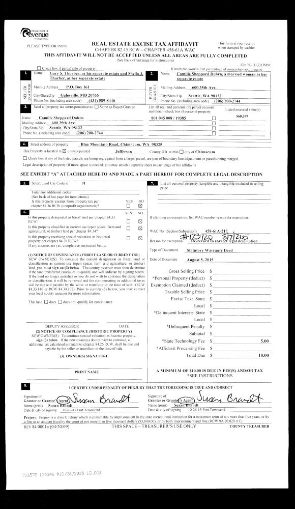 | 3 | 08/31/2016 | SWD | Statutory Warranty Deed | WILLIAM D PARKER | BARTT A CHIPMAN | | | $390,000.00 | 126197 | |