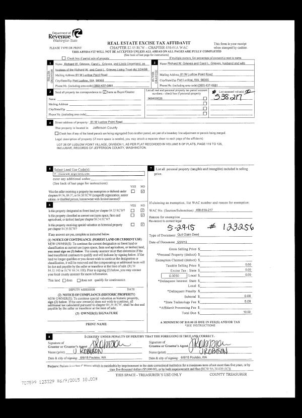 | 5 | 11/13/1996 | QCD | Quit Claim Deed | PEDERSEN,JULIUS & ELIZABE | PEDERSEN, ELIZABETH/TRST A & B | 0 | 0 | $0.00 | 80805 | 0 |