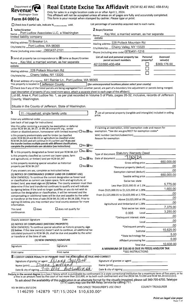 | Mailing Address: | 1191 EGG AND I RD CHIMACUM, WA 98325-9722 | % Ownership: | 100.0000000000% |