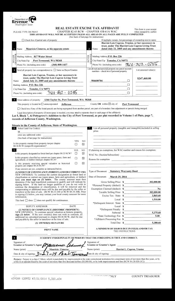 | 3 | 12/14/2001 | TXD | Tax Deed | JEFFERSON COUNTY, A WASHI | TRUST #63, MIDDLETON, G.P. TRU | 0 | 0 | $825.00 | 93680 | 0 |