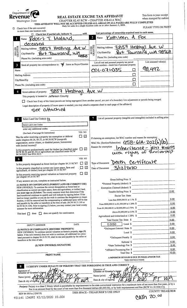 | 1 | 03/21/2014 | QCD | Quit Claim Deed | | | | | | 120938 | |