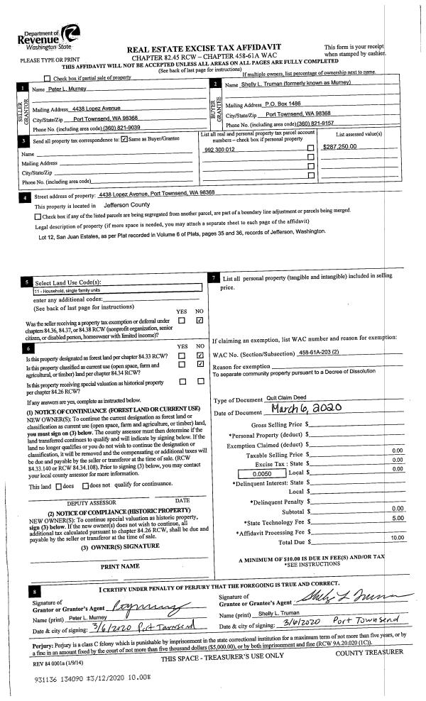 | Mailing Address: | 155 MOUNTAIN VIEW DR QUILCENE, WA 98376-9562 | % Ownership: | 100.0000000000% |