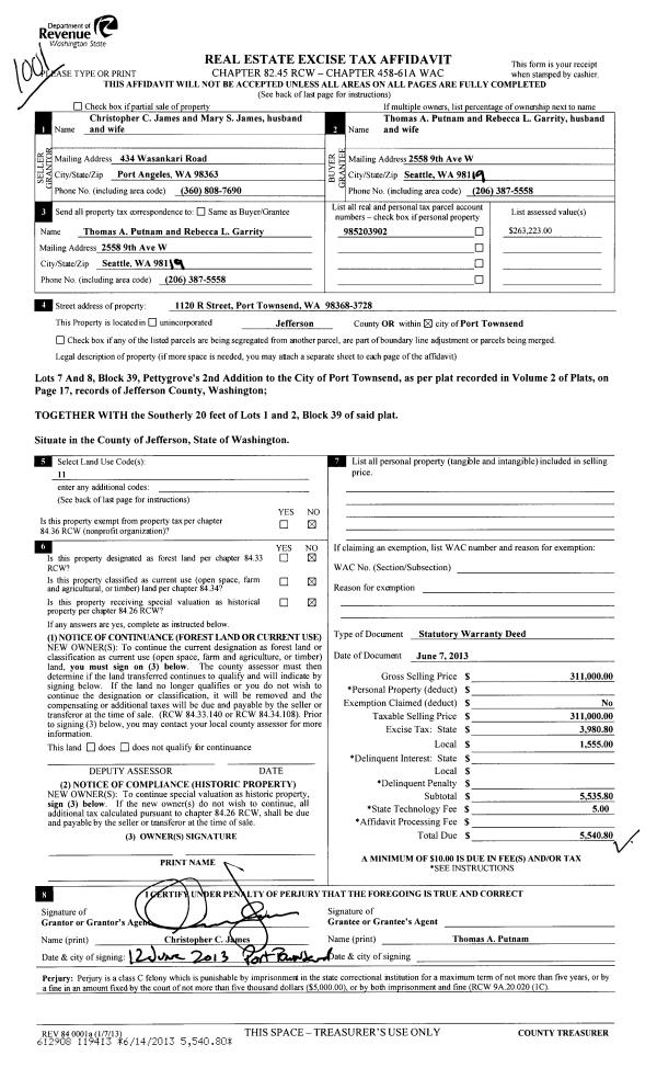 | 6 | 08/25/2014 | SWD | Statutory Warranty Deed | JAMES H AKIN TRUSTEE | JACQUELINE A HOULE | | | $297,500.00 | 121818 | |
