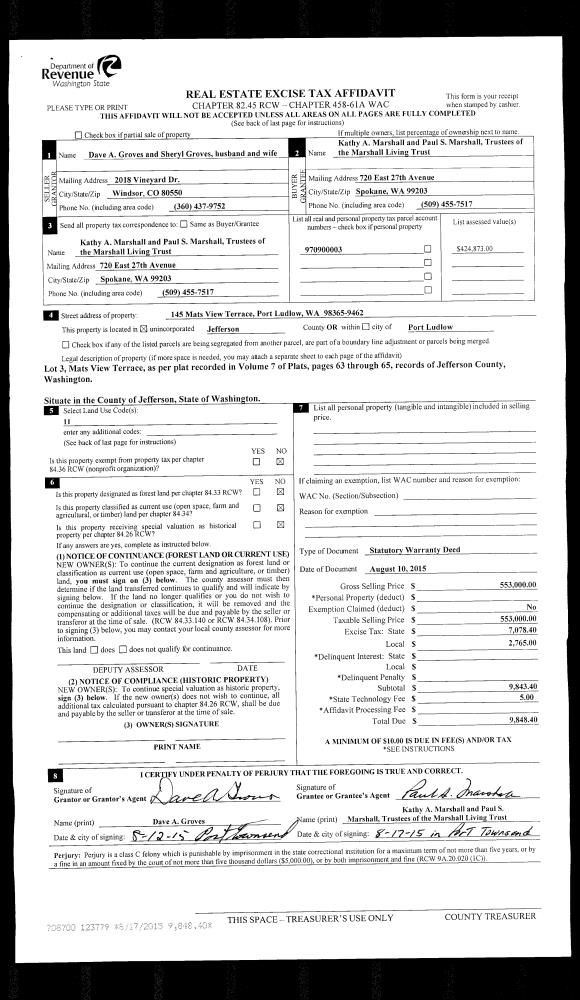 | 3 | 08/24/2004 | SWD | Statutory Warranty Deed | TRUSTON, THOMAS J & VIKKI | LANG, DUWAYNE & LINDA | 0 | 0 | $357,000.00 | 101294 | 0 |