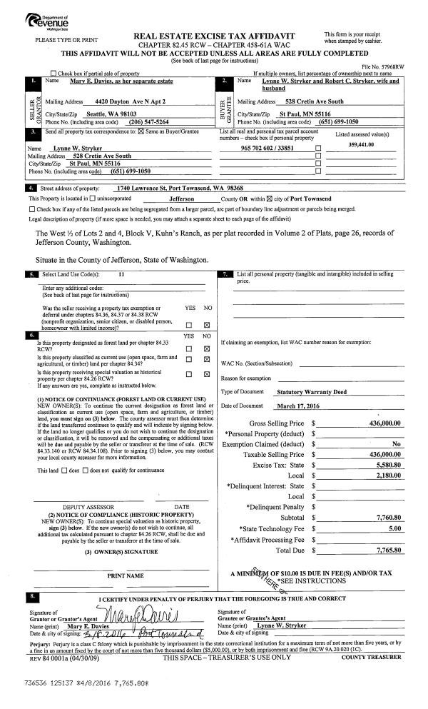 | 2 | 10/14/2016 | PRD | Personal Representatives Deed | | | | | | 126438 | |