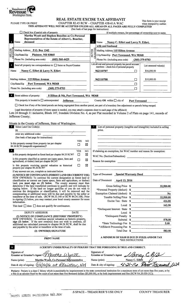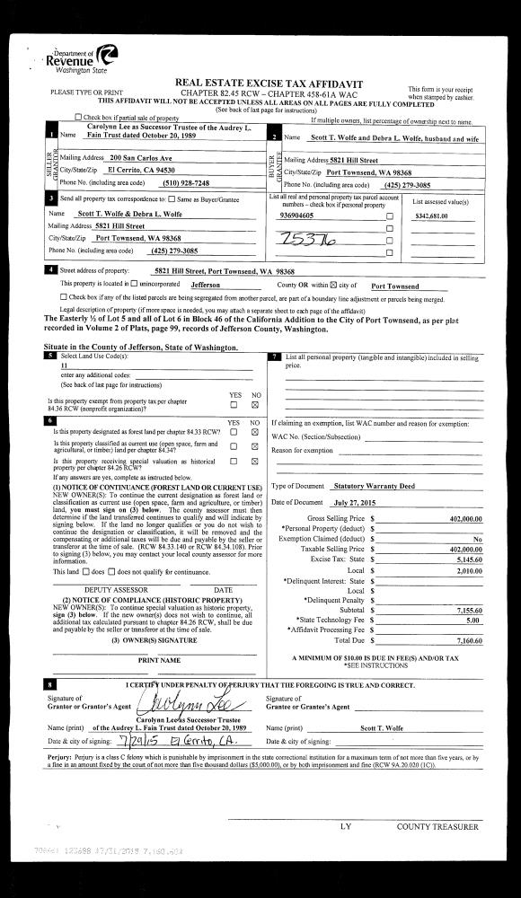 | 8 | 06/06/2005 | SWD | Statutory Warranty Deed | WHITMAN COLLEGE A WASHING | PORT PHOENIX, LLC | | | $74,000.00 | 103774 | 0 |