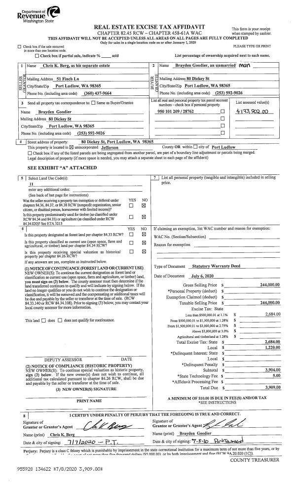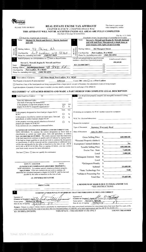 | Mailing Address: | 134 DUNSMUIR RD PORT LUDLOW, WA 98365-8736 | % Ownership: | 100.0000000000% |